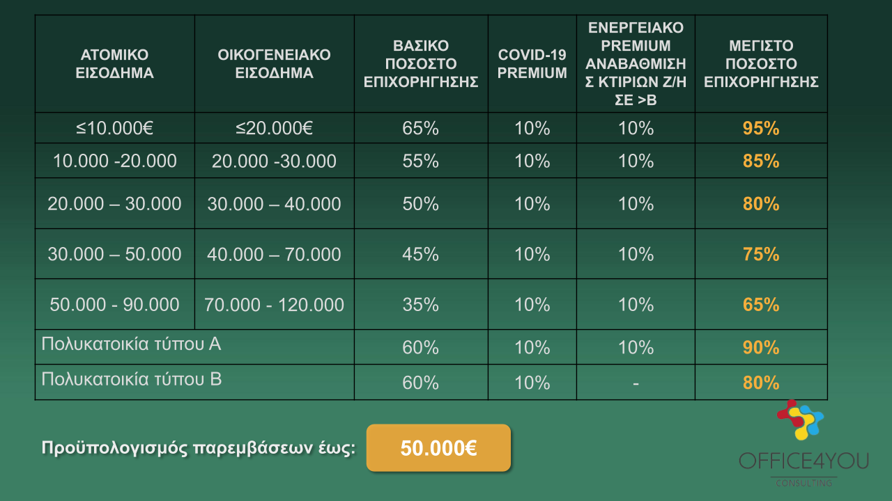 Εισοδηματικά κριτήρια και ποσοστά επιδότησης